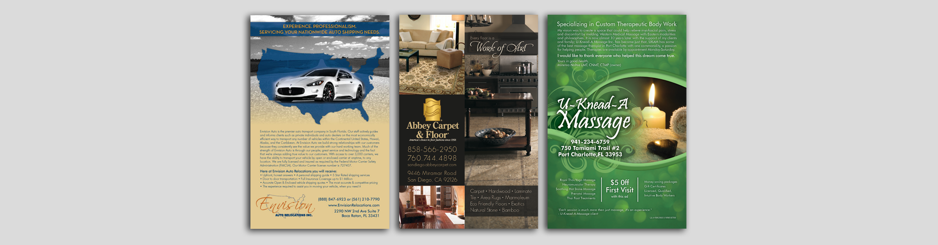 Check out all my work from print designs to websites and all-inclusive marketing.